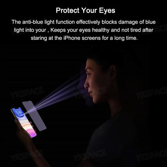 1-3Pcs 9H Anti Blue Ray Purpel Tempered Glass for iPhone 15 14 13 12 Mini 11 Pro X XR XS MAX 8 7 Plus SE Screen Protector Film