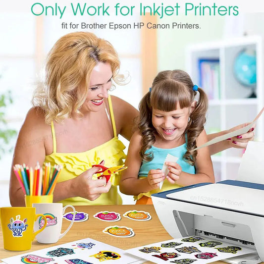 10/50 Sheets Holographic Printable Vinyl Sticker Paper Matte/Glossy/Transparent/Silver/Gold Adhesive Sticker for Inkjet Printer