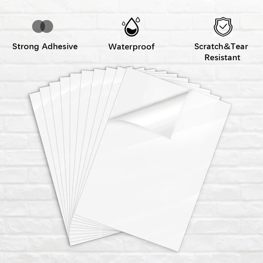10 Sheets Printable Vinyl Sticker Paper A4 Glossy Self-Adhesive Inkjet Printer Paper for Inkjet Printer DIY Decals Gift Crafts