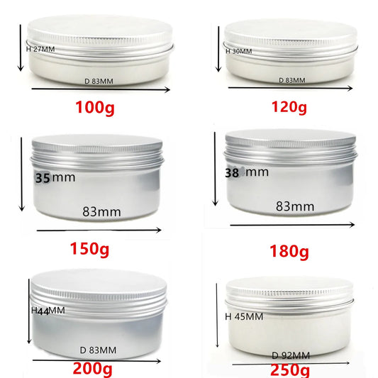 100ml/g 120g/ml 150g 200g /ml 250g/ml Aluminium Tins pot,case containers with screw thread window lid for Lip Balm Gloss Candle