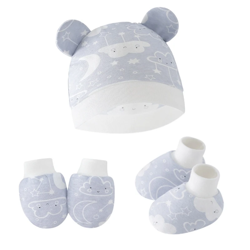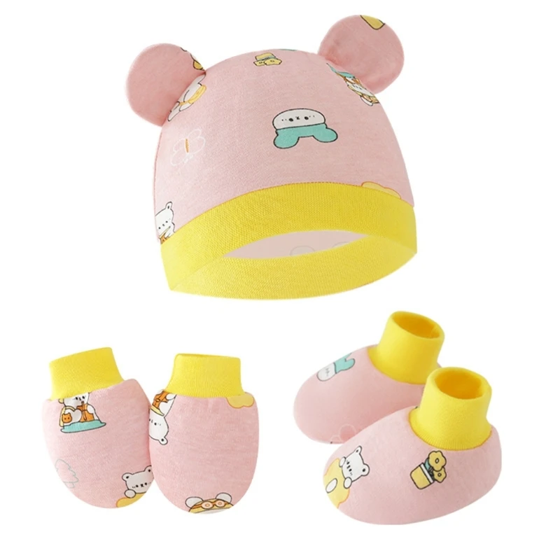 3pcs/set Cotton Newborn Cap with Anti Scratch Mittens and Foot Cover Infant Warm Headwear Baby Gloves with Socks Set