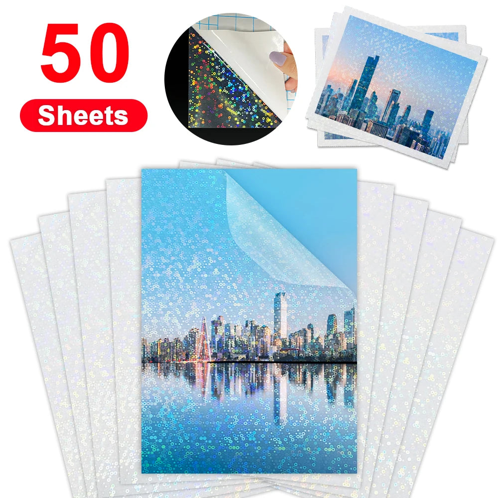 50 Sheets A4 Cold Laminating Film Holographic Sand Foil Adhesive Tape Back Stars Hot Stamping On Paper DIY Package Color Card